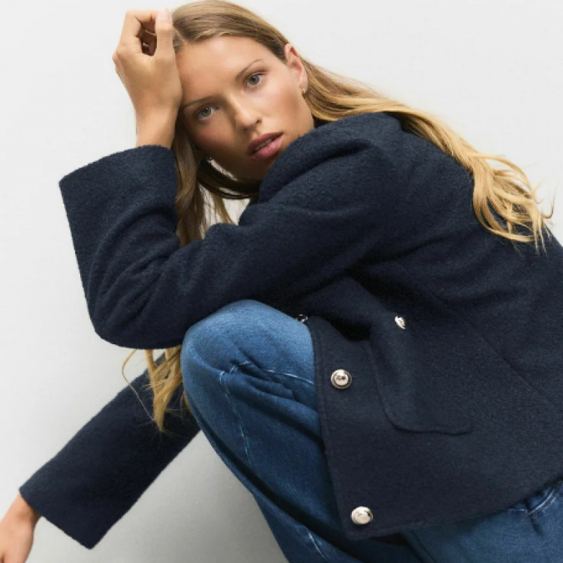PETITE FIT - BEZ KOŁNIERZYKA - Płaszcz wełniany - granatowy